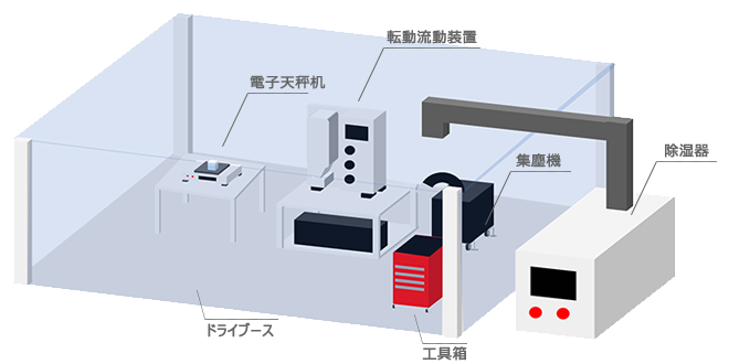 その一例を紹介させていただきます。Ex >転動流動装置+ドライブース、付帯機器